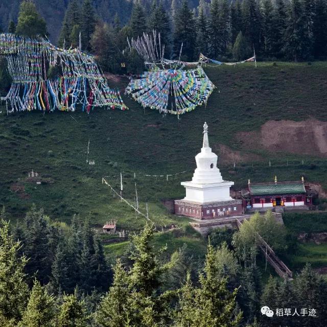 天空淅淅沥沥下起了小雨,但是这丝毫不影响信众们参加法会的热情。蜿蜒的路上开放了一朵朵伞花,应和着五彩的经幡,以及藏民与土族的节日盛装辉映成趣。那从天而降的雨滴,我宁愿相信那是天降得到佛菩萨加持的甘露,而非仅仅是雨,而这雨水反而衬托出了法会的殊胜与信众的虔诚,三天法会最后一天,的确是信众最多的一天。