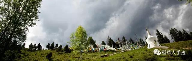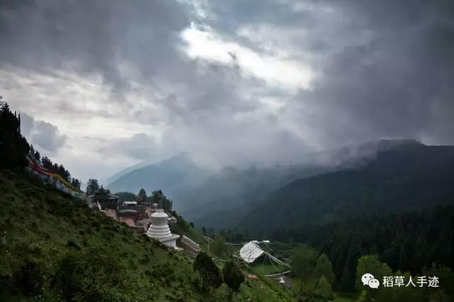 难道是因为这“四道彩虹”的出现,雨才停止的吗?这时的天透亮了许多,雨竟然暂停了,小路上泛着亮光,天空并没放晴,雨云似乎正在间歇休息,而法会却无论下多大多久雨都不会停歇的。