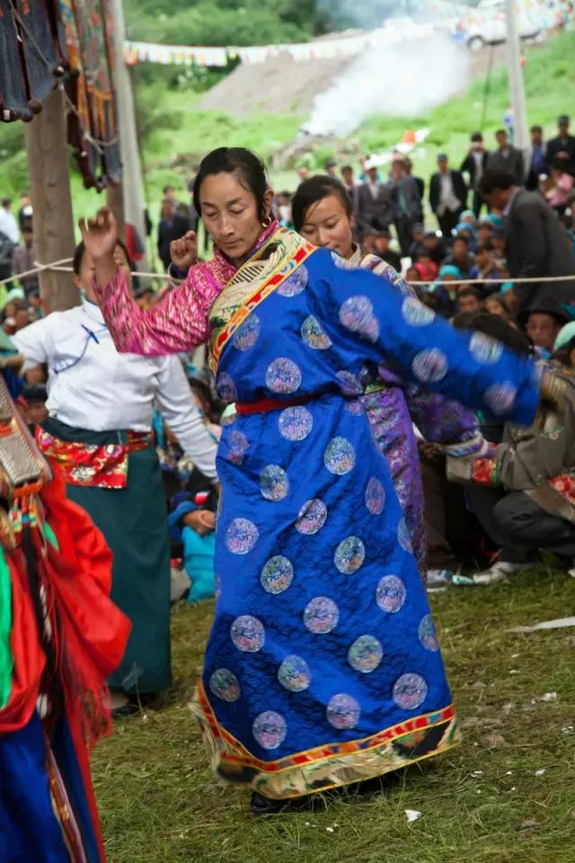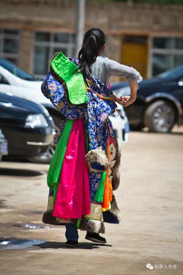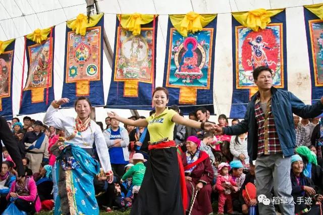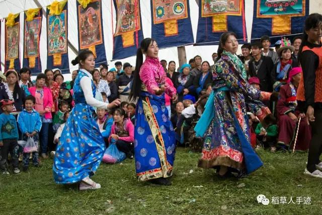 果然,场地上八个藏女跳的锅庄看起来和法会第一天跳的传统锅庄不同,有了很多新舞步,不过看起来依旧优美,总也没有离弃民族的精髓。