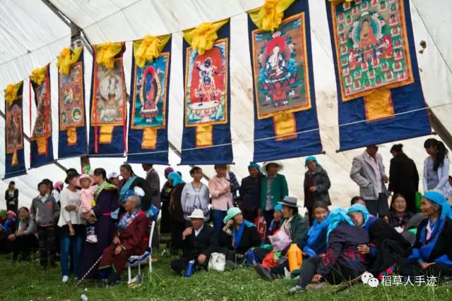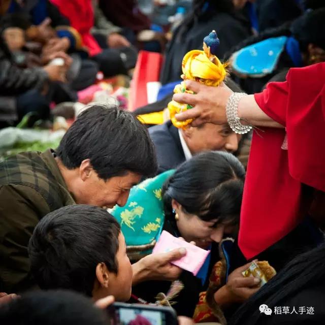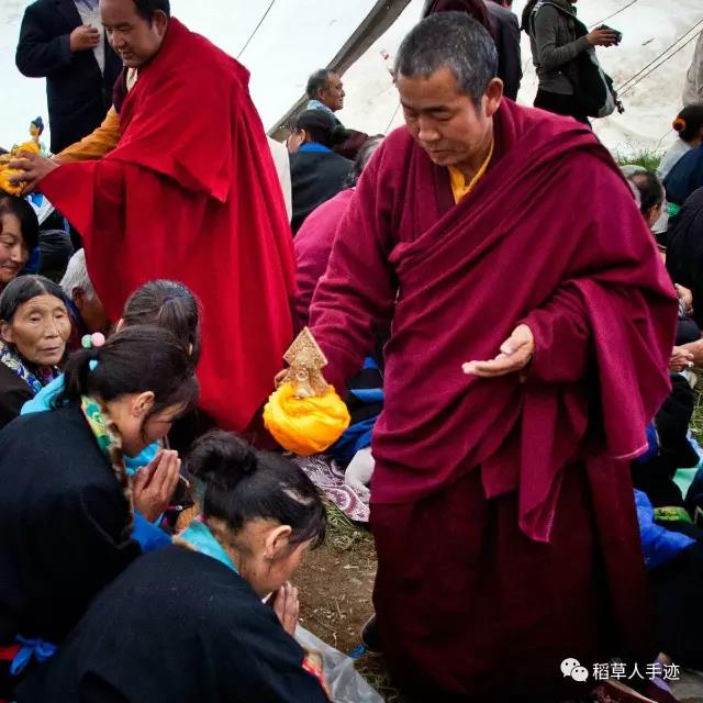 这个环节进行了足足半个多小时才结束。接下来,虽然上师仁波切说了这一次不摸顶了,但是依旧有人跑到前台帐篷里找上师摸顶,混乱之中上师慈悲,说可以让老人进来,年轻人就不要进来了。但是还是有年轻的藏民涌进来,这场面让我再一次感受到人们心中对信仰的虔诚。