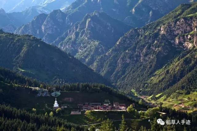 由于法会三天来的人比较多,以及住在寺院山上的或在山下临时搭建的帐篷里的人很多,用水用电都超过了负荷。寺院的水泵达到了能力极限,导致用水供给不足,三天中,有两天的用水都是寺院用农用三轮车从山下往山上拉水,所以早上起床不洗脸也正常。简单地吃点稀饭咸菜,八点钟我便沿着盘山小径下山了,远山、云雾、如天籁一般的唱诵,震撼人心的“嗡玛尼呗美吽”的六字真言回荡在山谷之中……